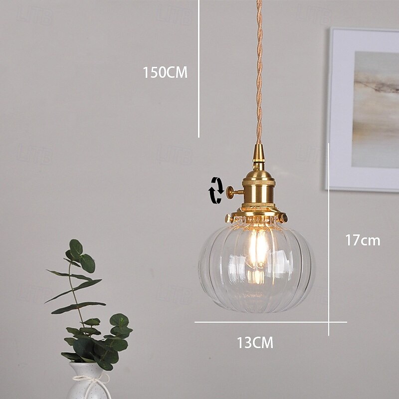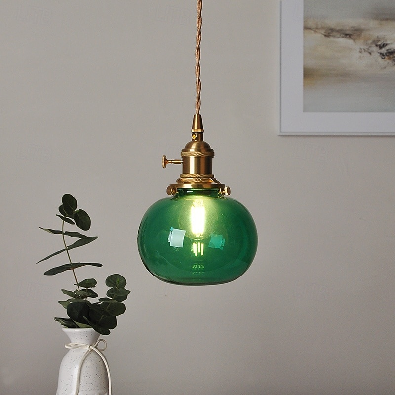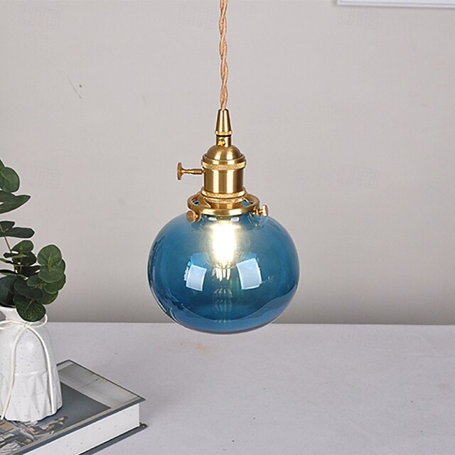 Blue Blown Glass Pendant Light Bathroom Green Glass Hanging Ceiling Lamp Ribbed Clear Glass Ball Island Light Fixture Pumpkin Vintage 85-265V 1