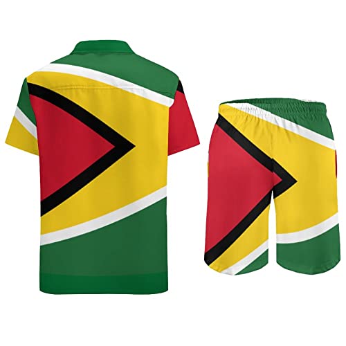 Adugen Origei Summer Combo Men's Two Piece Matching Sets Guyana Flag Beach Suit Button-Up Shirt Hawaiian Shirt M 1