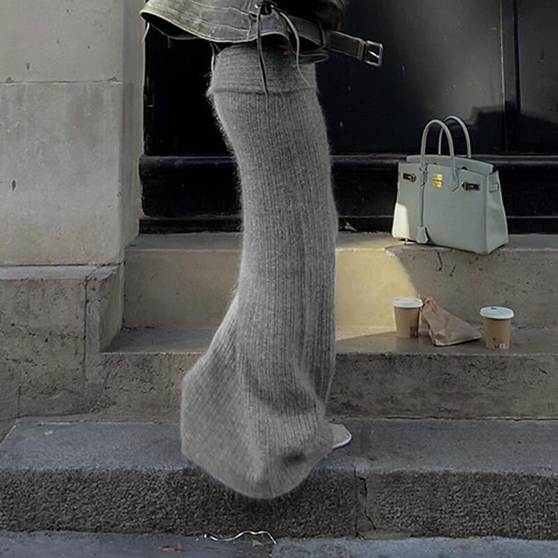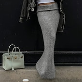 More information about Women's Skirt Casual Maxi Mid Rise Skirts Floral Knitting Micro-elastic Vacation Going out Grey Winter Nylon