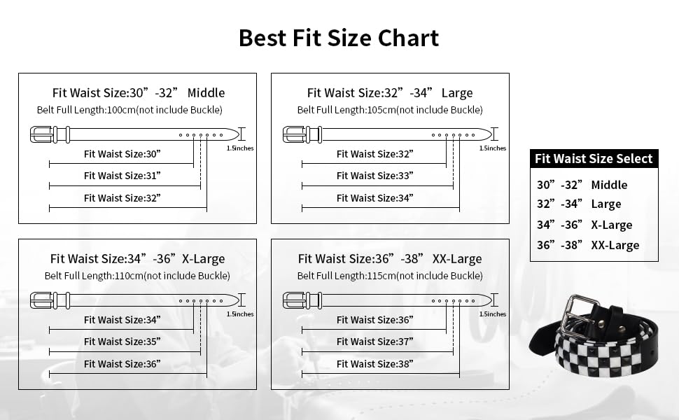 • This studded belt is a perfect combination of genuine cowhide leather Width 3.8 cm /1.5 inches. There are 6 holes in the belt to make the belt more suitable for waist size.