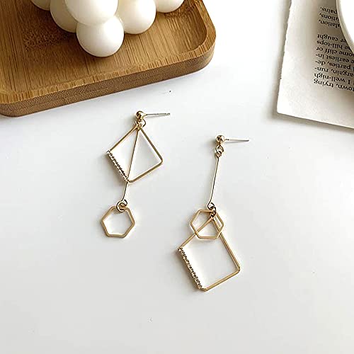 More information about Mismatch Asymmetry Abstract Irregular Geometry Drop Dangle Earrings Sparkling Rhinestone Long Chain Pendant Earrings for Woman