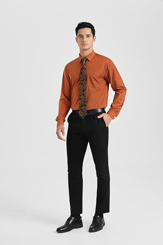 HISDERN Mens Dress Shirt Long Sleeve Matching Tie and Pocket Square Set Classic Button Down Formal Business Shirts 6