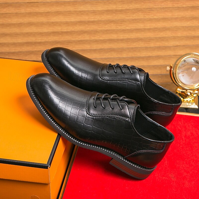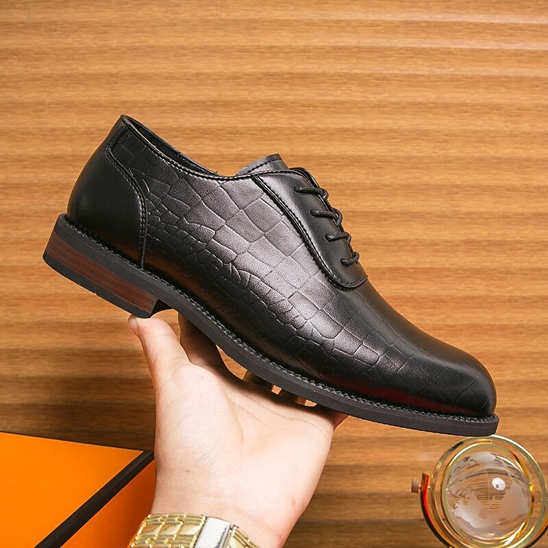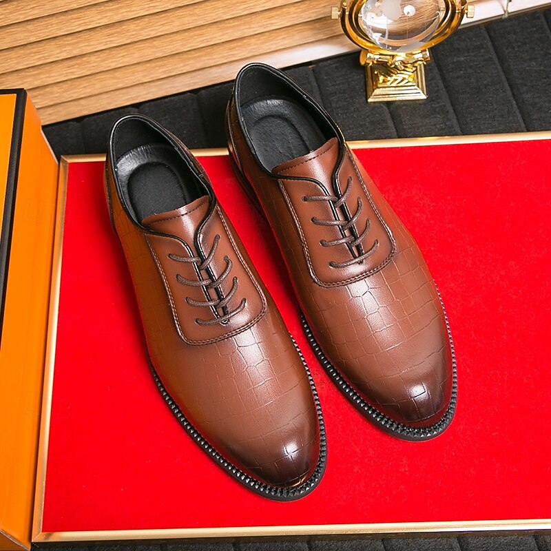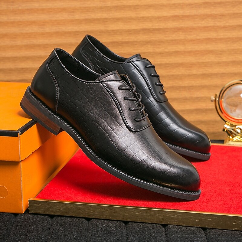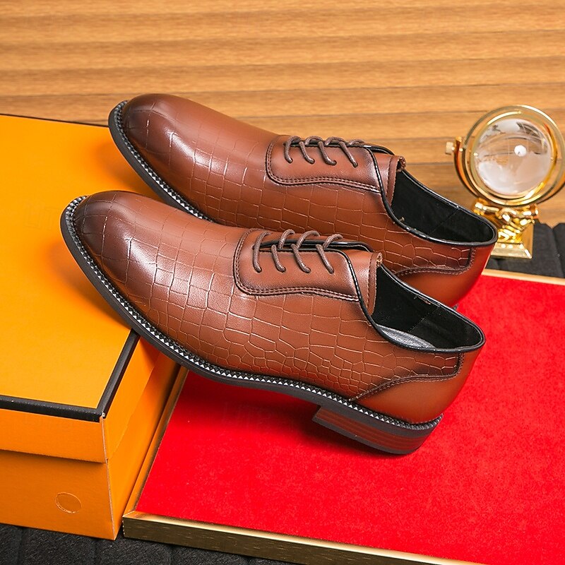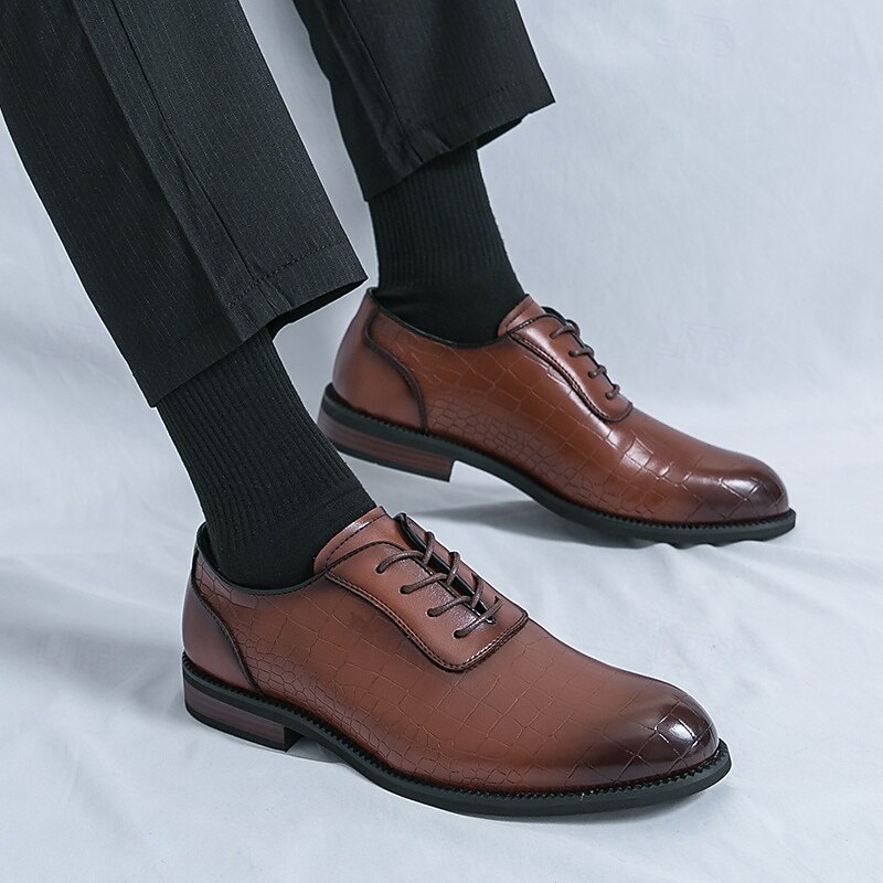 HOT ! Men's Brown Faux Leather Crocodile-Embossed Oxford Shoes - Stylish & Sophisticated for Casual & Formal Wear