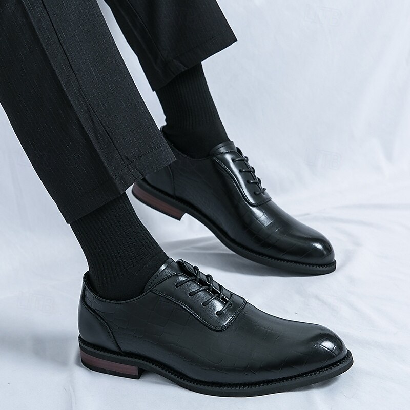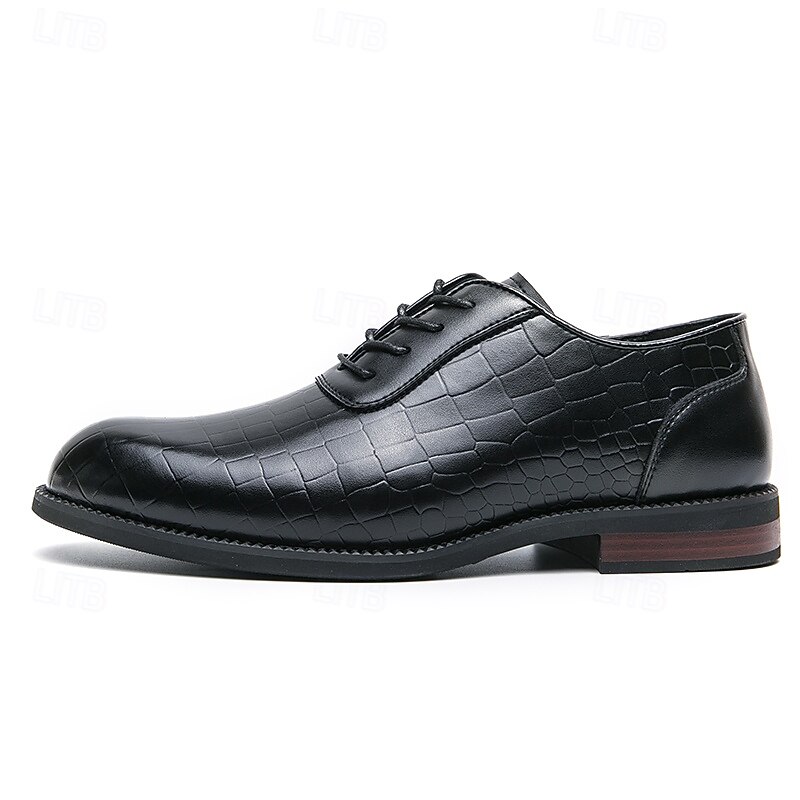 More information about Men's Brown Faux Leather Crocodile-Embossed Oxford Shoes - Stylish & Sophisticated for Casual & Formal Wear