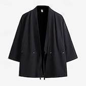 More information about Men's Shirt Linen Shirt Casual Shirt Button Up Shirt Cotton Shirt Plain Vacation Hawaiian Black Red Dark Navy Gray Long Sleeve Open Front Spring & Fall Clothing Apparel Pocket