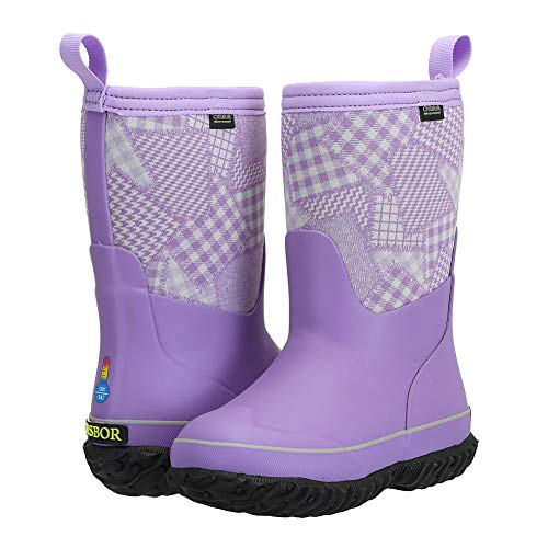 CNSBOR Kids Waterproof Insulated Rubber Neoprene Rain Boots with Easy on Rainboot for Youth 6