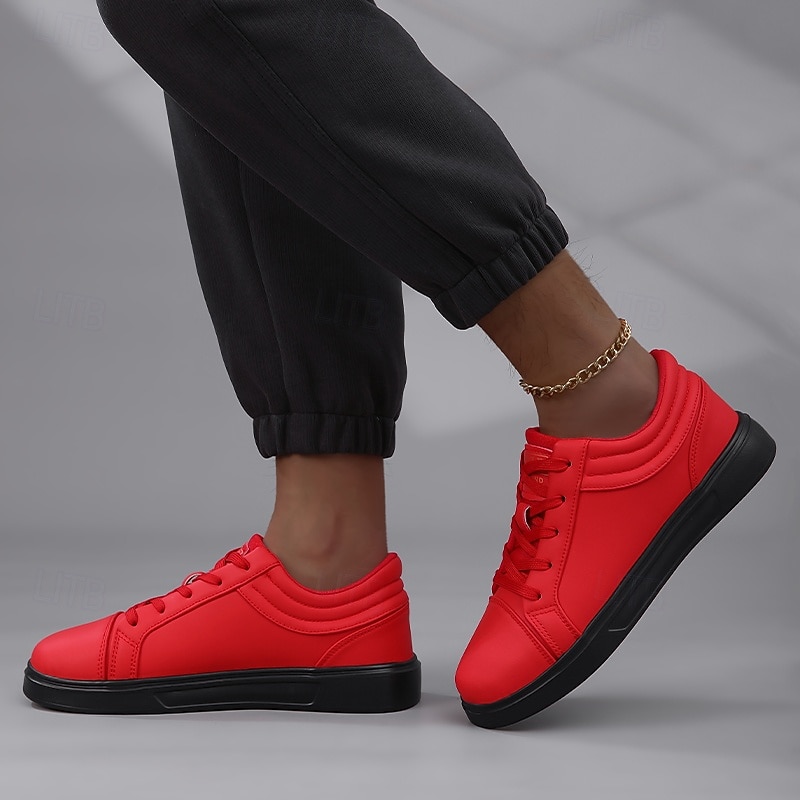 More information about Men's Red Leather Sneakers with Sleek Design - Bold Casual Streetwear for Everyday Comfort