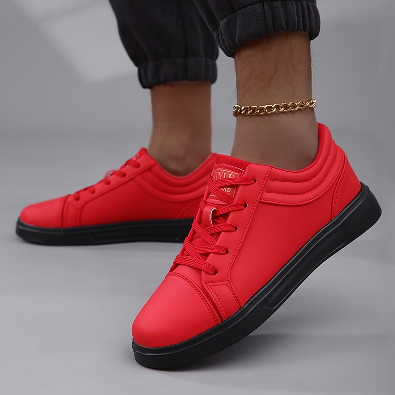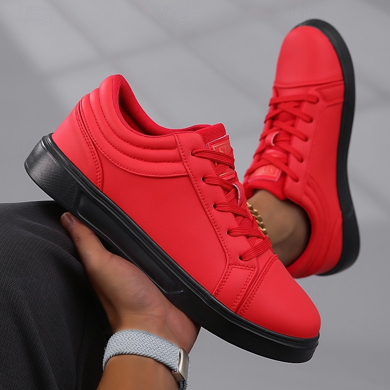 HOT ! Men's Red Leather Sneakers with Sleek Design - Bold Casual Streetwear for Everyday Comfort