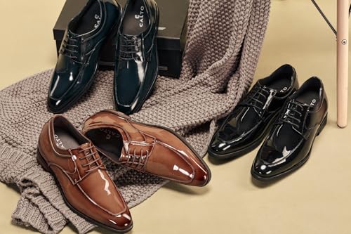 More information about CALTO Men's Invisible Height Increasing Elevator Shoes - Midnight Blue Patent Leather Lace-up Formal Dress Oxfords - 2.8 Inches Taller - K2712 - Size 7.5 D(M) US