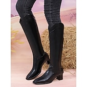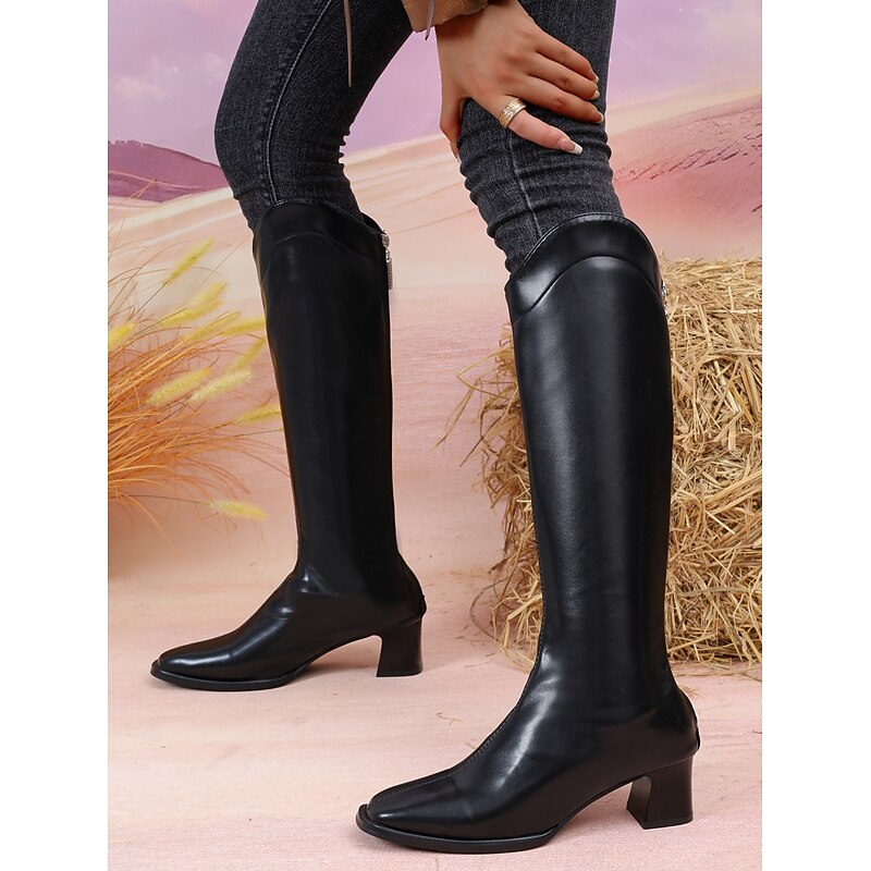 HOT ! Women's Brown Knee High Boots – Square Toe Western Riding Boots with Block Heel for Fall Winter Country Outfits and Casual Wear