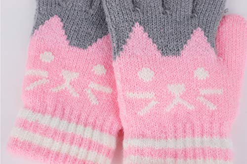 Cute Cat Knitted Winter Gloves for Girls Boys Assorted Color Warm Magic Gloves Mittens for Kids Children 4-9 Years 4