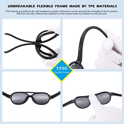 • Soft Silicon And Unbreakable Materials - Made of TPEE materials that stretch and return to their original shape, these baby sunglasses are lightweight for absolute comfort. FBA Certified BPA and phthalates free, scratchproof, shatterproof, polycarbonate.