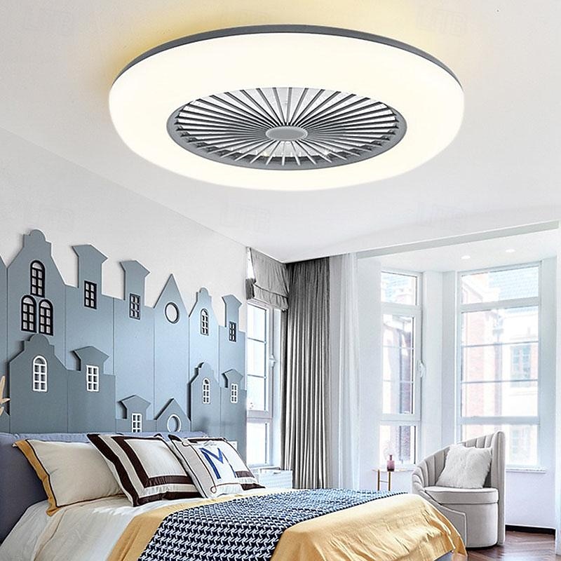 HOT ! Ceiling Fans with Lights, 55cm Modern Low Profile Ceiling Fan, 72W Flush Mount, 3 Colors, 3 Speeds, Dimmable Ceiling Fan with Light 110-240V