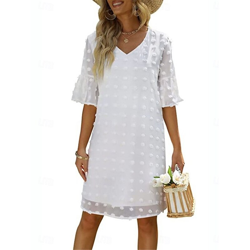 More information about Women's Mini Dress Shift Dress Summer Dress Solid Color Vacation Casual Daily Regular Fit Graphic Half Sleeve V Neck Black White Pink Wine Summer