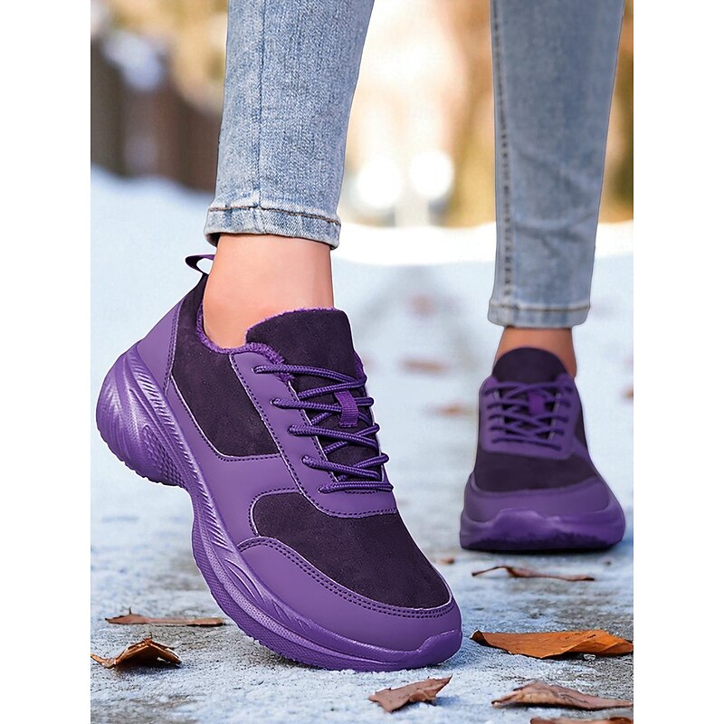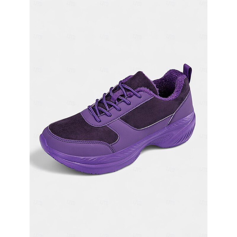 HOT ! Women's Purple Warm Fur Lined Wide Fit Sneakers with Non-Slip Sole, Cozy Winter Casual Shoes for Ladies, Comfortable Outdoor Walking & Cold Weather Wear