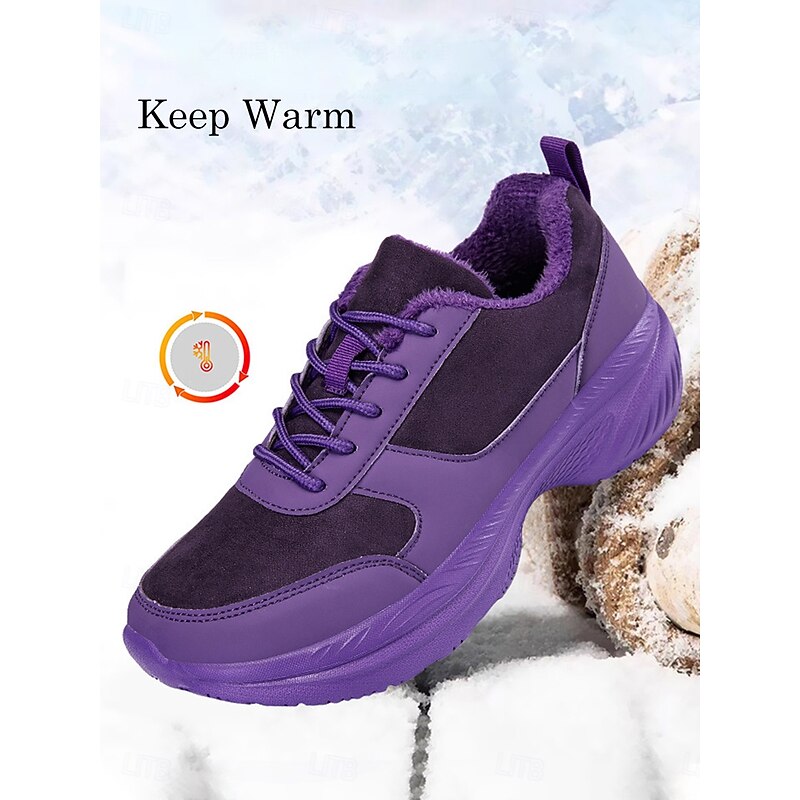Women's Purple Warm Fur Lined Wide Fit Sneakers with Non-Slip Sole, Cozy Winter Casual Shoes for Ladies, Comfortable Outdoor Walking & Cold Weather Wear 14