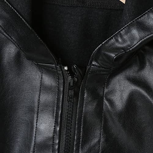 Toddler Boys Winter Long Sleeve Warm PU Coat Jacket Solid Color for Babys Clothes Black Coat Jackets Fall Winter Clothes 4