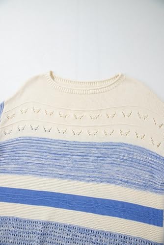 • ① 《Unique Open Stitch Design》: Add a touch of elegance to your wardrobe with this Light Blue Open Stitch Puff Sleeve Sweater, featuring a gradation weave panel design that creates a unique and eye-catching look.