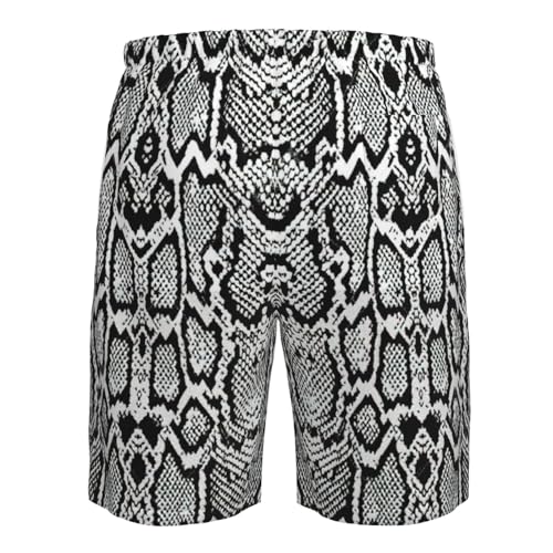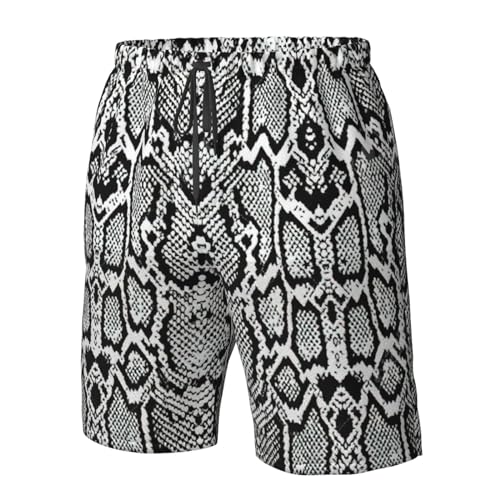 HOT ! Black White Snake Skin Print Men's Swim Trunks Quick Dry Beach Shorts with Pockets Lining Swimwear Bathing Shorts