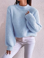 More information about Women's Sweater Pullover Sweater Jumper Casual Soft Pure Color Ribbed Crew Neck Knitted Long Sleeve Regular Tops Knit Outdoor Daily Weekend White Pink Fall Winter