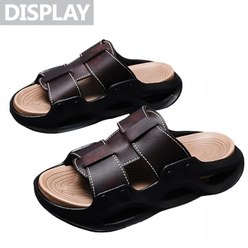 Mens Leather Platform Non Slip Beach Slides Comfortable Slip On Open Round Toe Thick Sole Casual Sandals For Casual Daily Vacation Indoor Outdoor 6