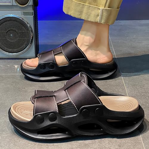 HOT ! Mens Leather Platform Non Slip Beach Slides Comfortable Slip On Open Round Toe Thick Sole Casual Sandals For Casual Daily Vacation Indoor Outdoor
