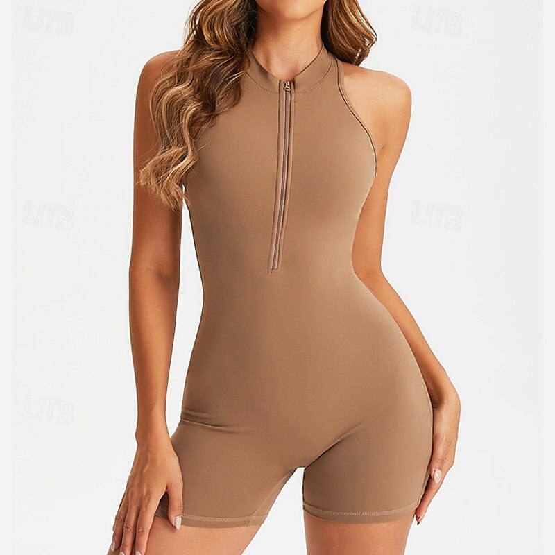 $37.99 - Women's Workout Jumpsuit One Piece Romper Zip Up Solid Color Bodysuit Light Coffee Black Gym Pilates Yoga Tummy Control Sleeveless Sport Activewear Tight Fit 2025. Shop for cheap Sets & One-Pieces online? Buy at lightinthebox.com on sale today!
