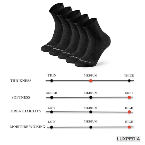 Women's Athletic Casual Quarter Crew Socks, Seamless Toe Arch Support Soft Breathable, 5 Pack 5