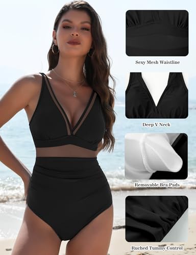 • 【Mesh V Neck Swimsuits】 The top of the One piece swimsuit features a backless design with freely adjustable straps for elasticity and length, so you can find your perfect fit. Featuring mesh fabric and deep V-neck design, our high waisted Bathing Suits make you more elegant and sexy. Removable bra pads make you have a more comfortable wearing experience. The push-up cut provides better support and gives you a more upright and elegant curve.