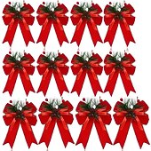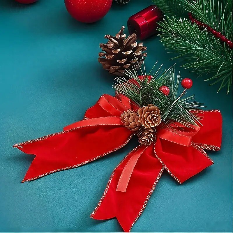 HOT ! 6/12Pcs Large Christmas Tree Bow Ornaments, DIY Velvet Ribbon with Trim, Xmas Tree Topper and Hanging Decorations for Holiday Home Décor