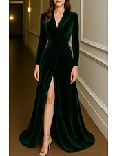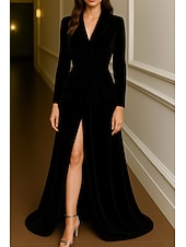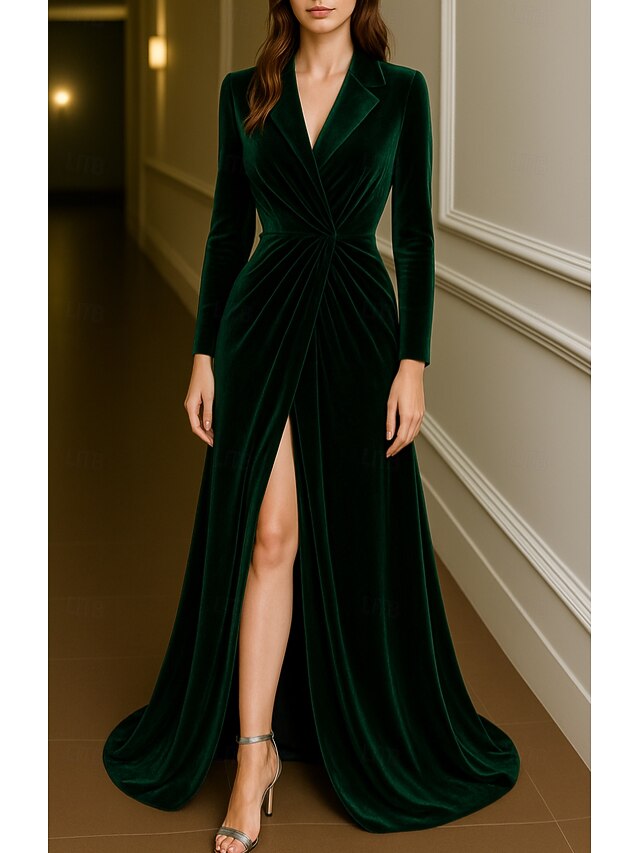 More information about Tuxedo Dress A-Line Formal Wedding Wedding Guest Velvet Elegant Long Sleeve Floor Length Split Thigh Notched Lapels