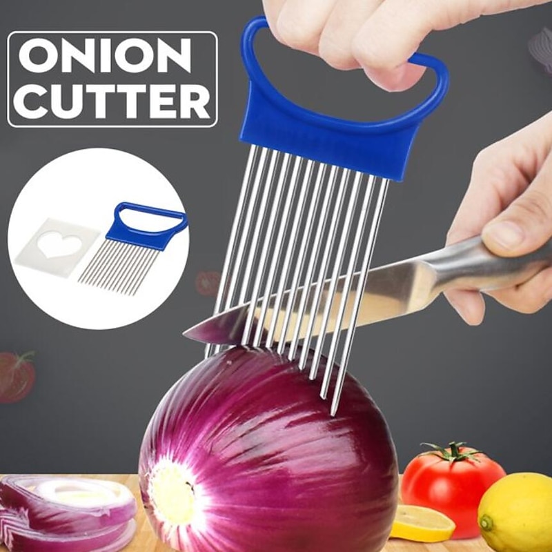 More information about 2PCS Onion Vegetables Slicer Cutting Tomato Slicer Cutting Aid Holder Guide Slicing Cutter Safe Fork Onion Cutter Kitchen Accessories