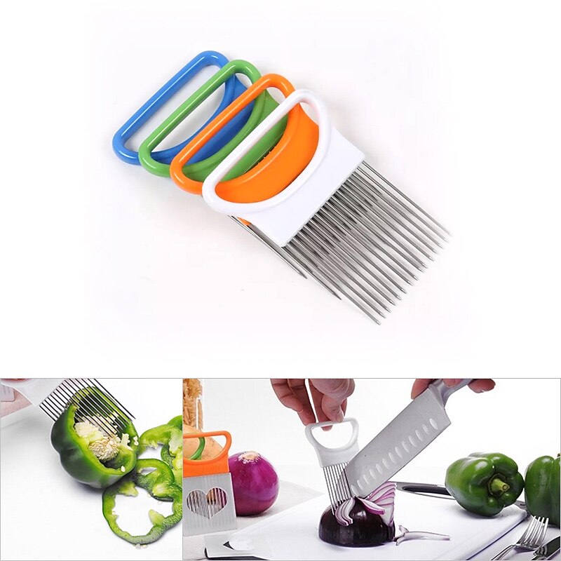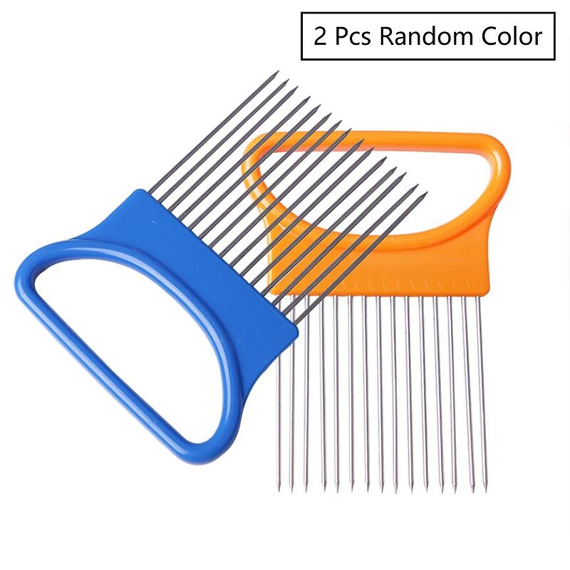 HOT ! 2PCS Onion Vegetables Slicer Cutting Tomato Slicer Cutting Aid Holder Guide Slicing Cutter Safe Fork Onion Cutter Kitchen Accessories