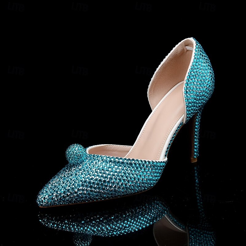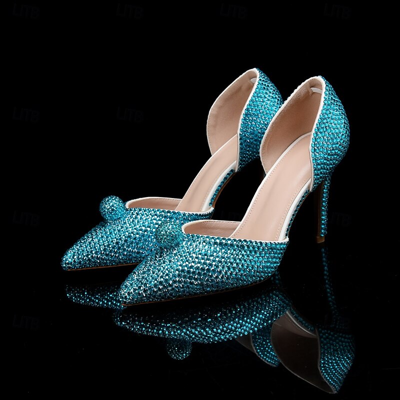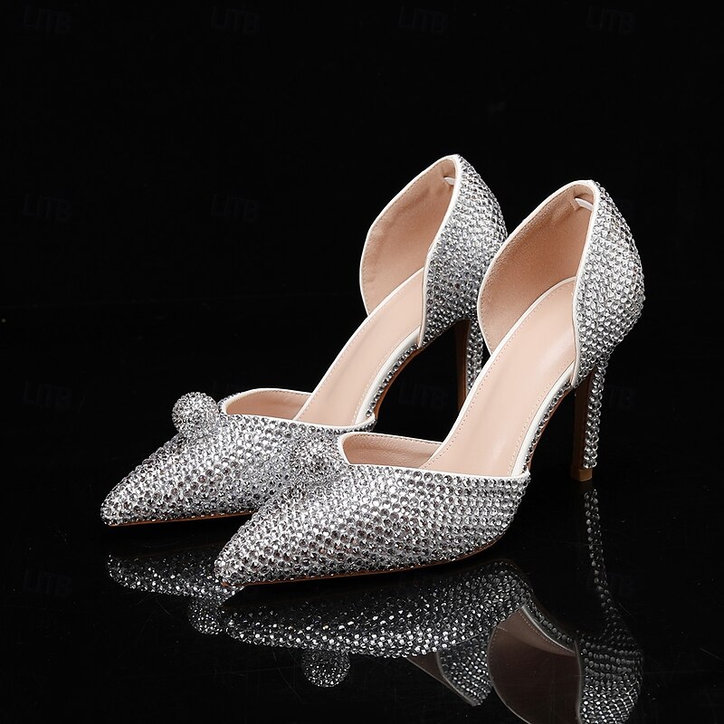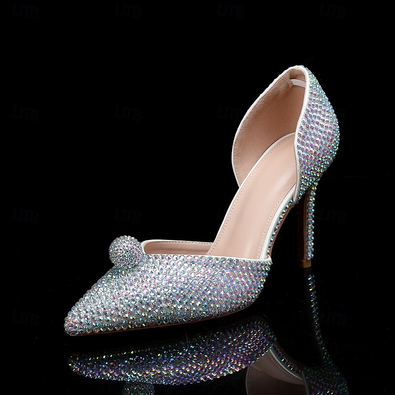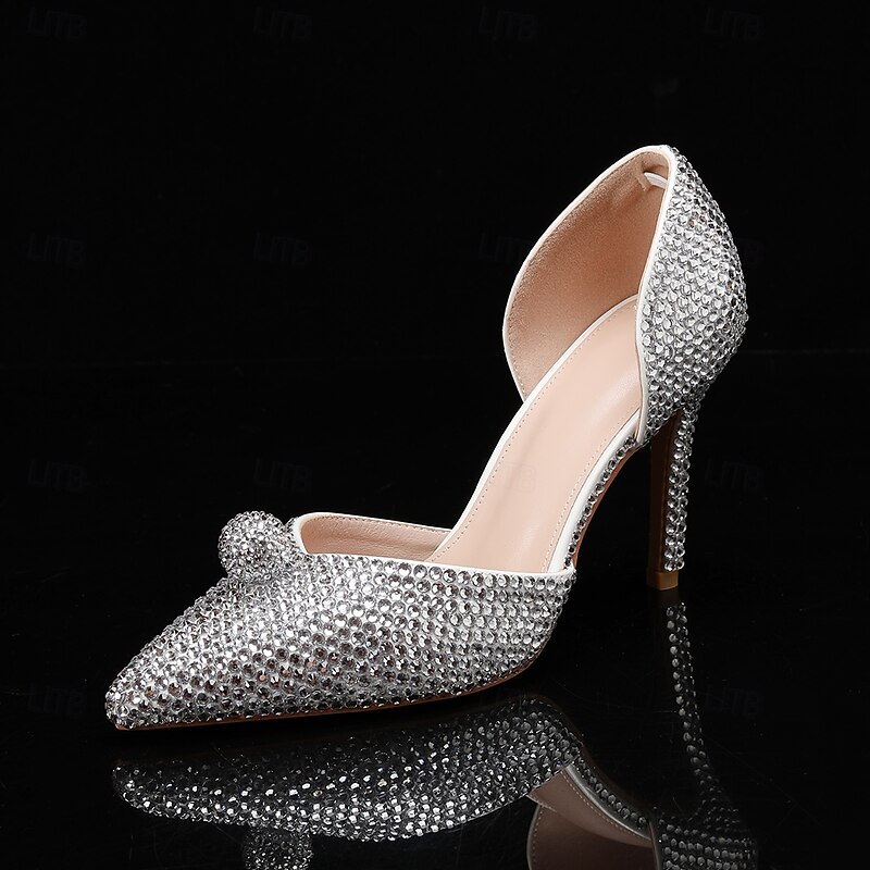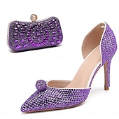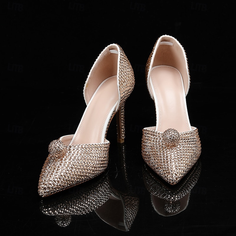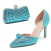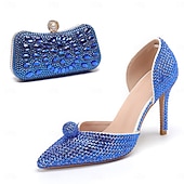 Women's Champagne Rhinestone Stiletto Heels and Clutch Bag Set – Elegant Pointed Toe High Heel Shoes for Wedding, Prom, and Evening Parties 24