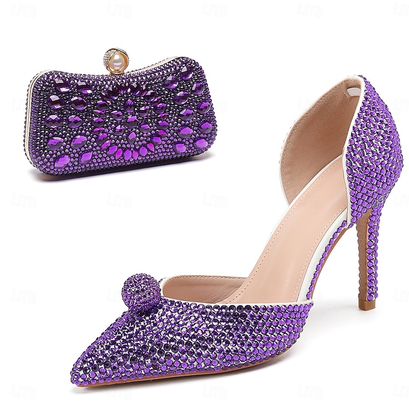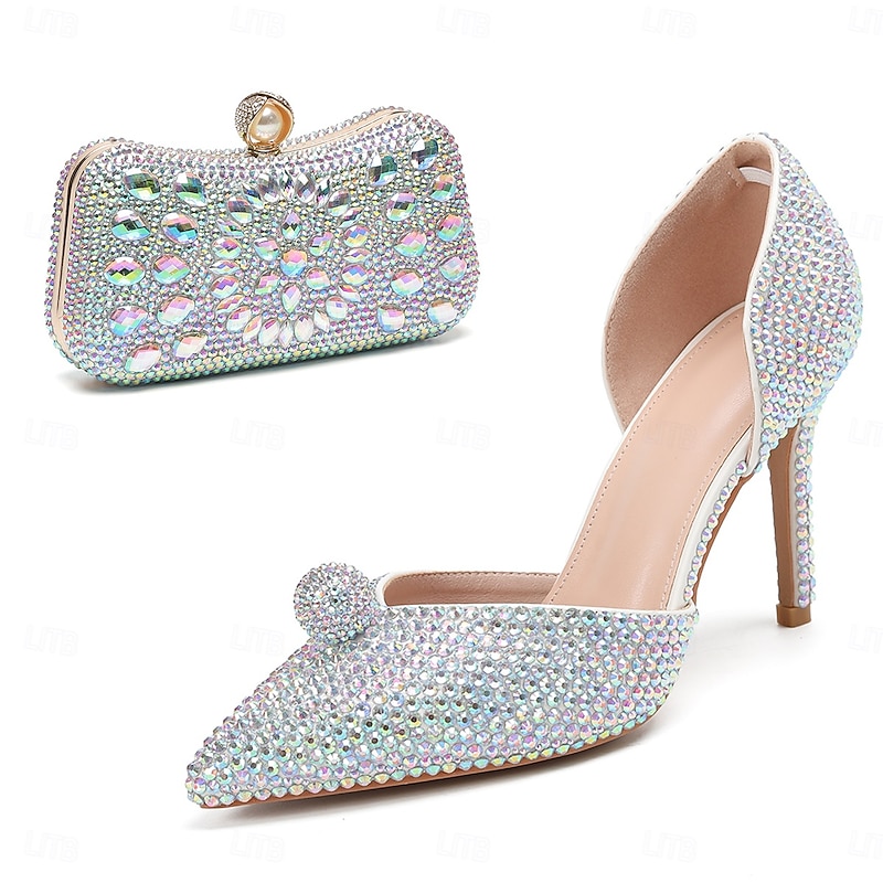 Women's Champagne Rhinestone Stiletto Heels and Clutch Bag Set – Elegant Pointed Toe High Heel Shoes for Wedding, Prom, and Evening Parties 20