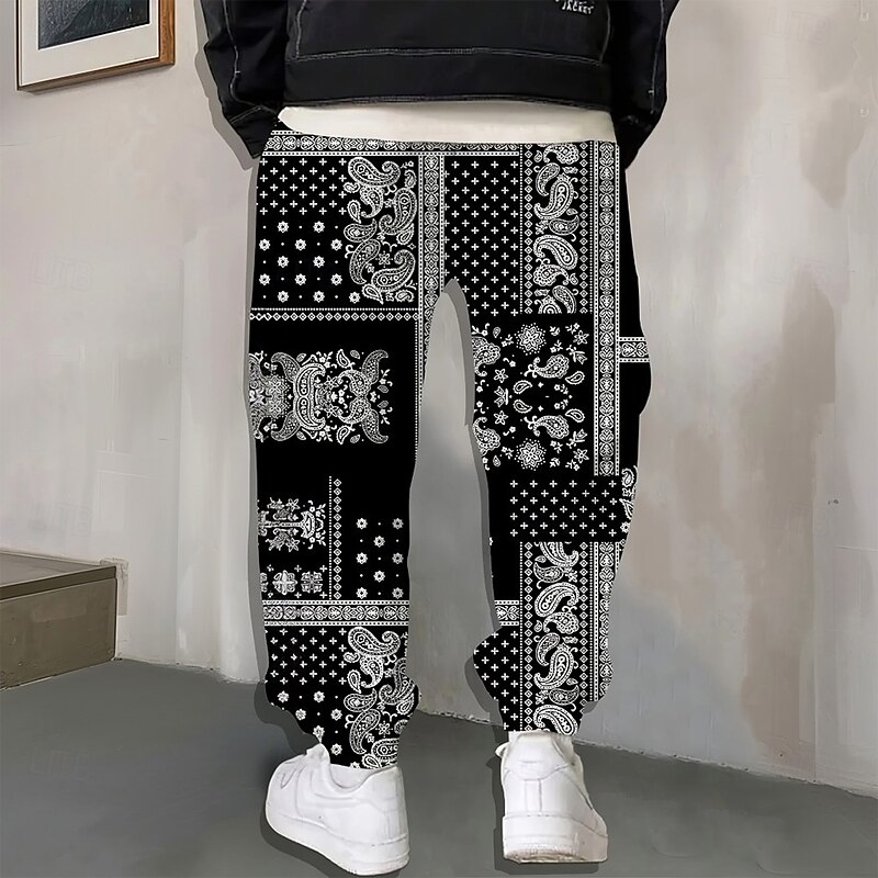 Men's Paisley Color Block Sweatpants Joggers Trousers Mid Waist Drawstring Elastic Waist Ethnic Casual Jogging Streetwear Workout Athletic Sweatpants with Pockets Spring Fall 3D Print Black 1 Black 8
