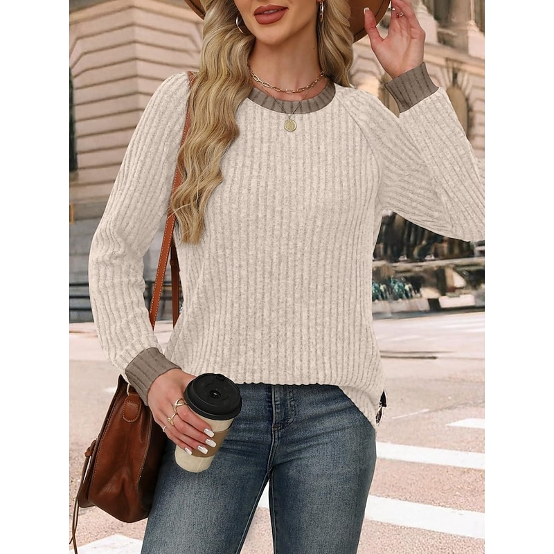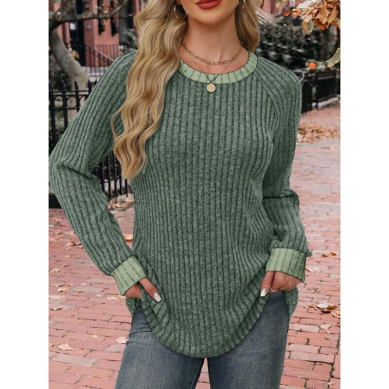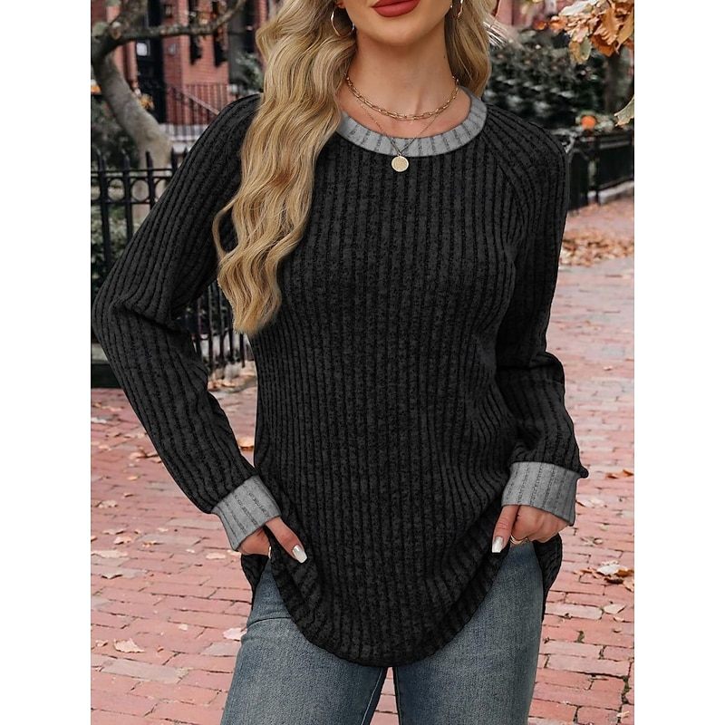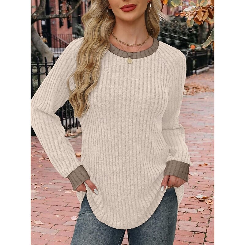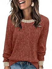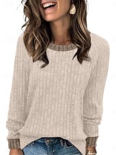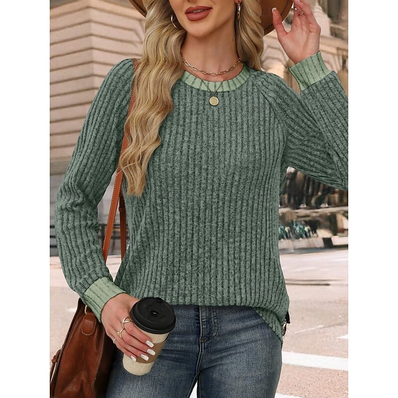 More information about Women's Blouse Solid Color Stylish Casual Long Sleeve Crew Neck Regular Tops Daily Patchwork Black Brown Green Apricot Spring Fall Winter