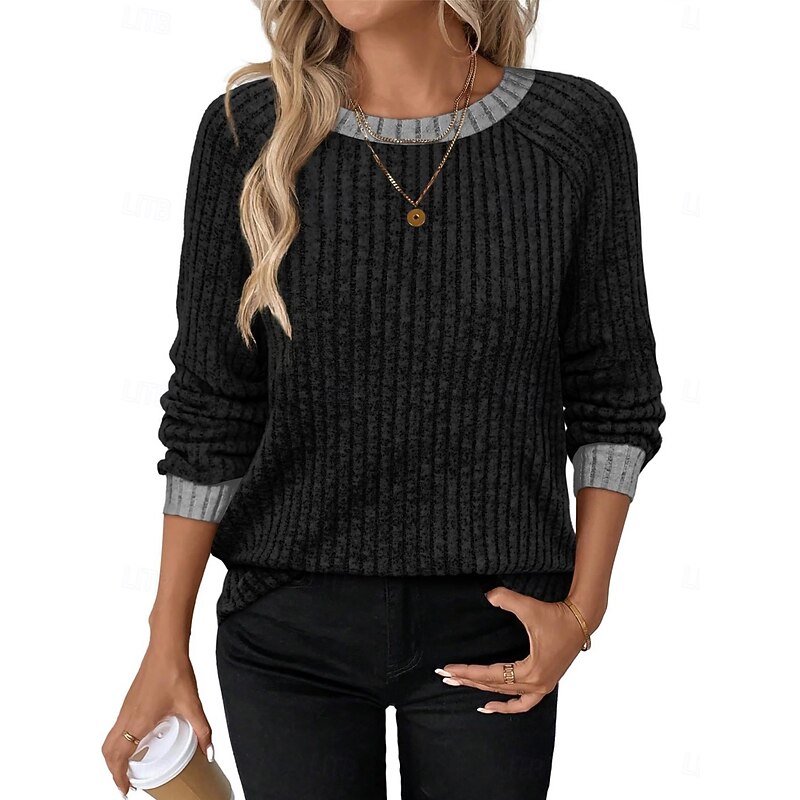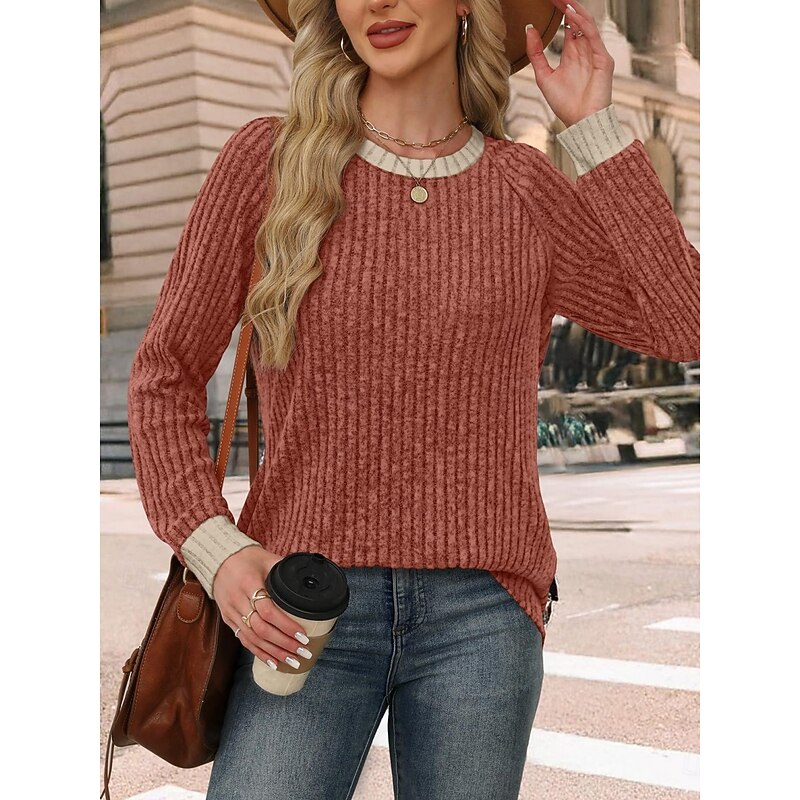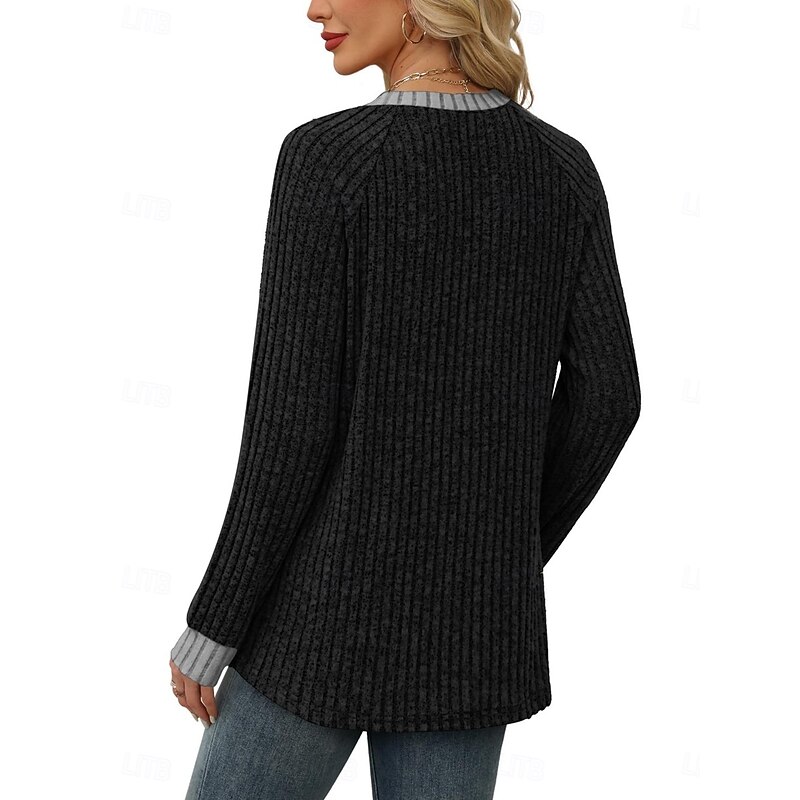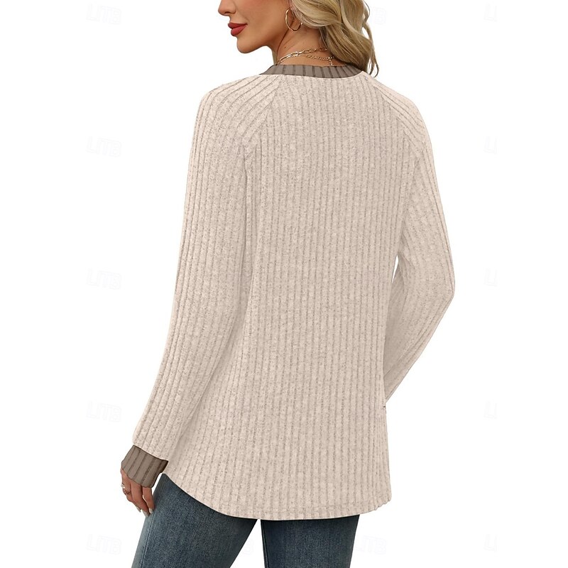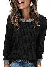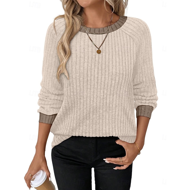 More information about Women's Blouse Solid Color Stylish Casual Long Sleeve Crew Neck Regular Tops Daily Patchwork Black Brown Green Apricot Spring Fall Winter