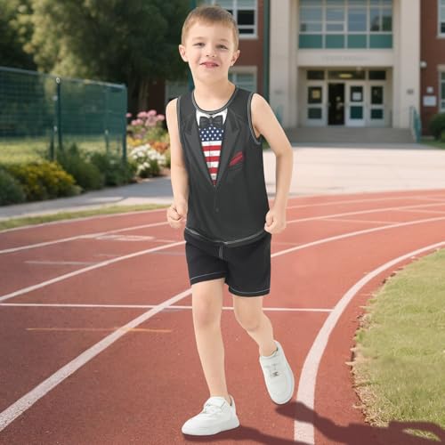Boys Tank Top Shirts American Flag Tuxedo Sleeveless T-Shirts Crew Neck for Kids Clothing Children 5