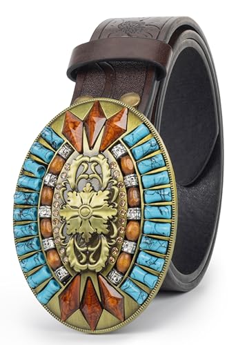 More information about Western Cowboy Belt for Women Tuoquoise Bead Buckle Belt for Jeans Pants