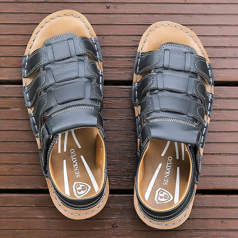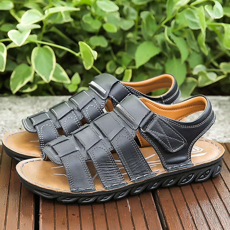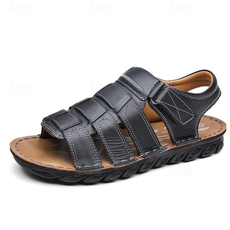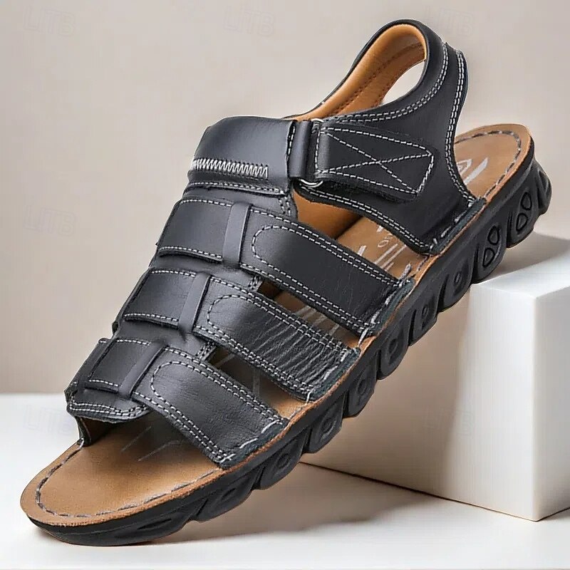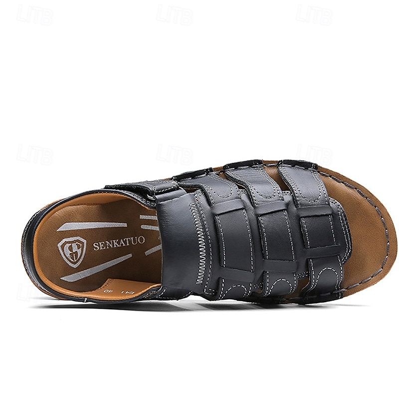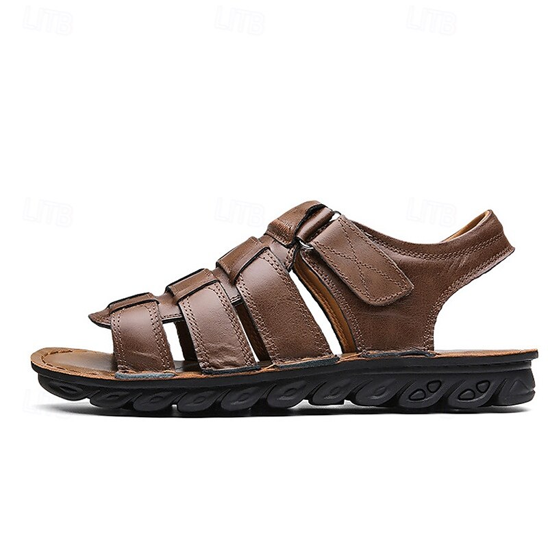 HOT ! Men's Brown Faux Leather Sandals – Adjustable Straps, Breathable Design, Casual Outdoor Footwear for Summer Activities