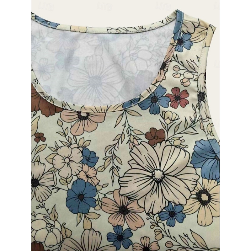 Women's Mini Dress Casual Dress Tank Dress Stylish Casual Vacation Daily Regular Fit Floral Short Sleeve Crew Neck Khaki Summer 6