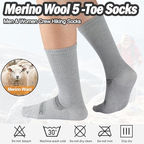 Merino Wool Toe Socks for Hiking Men Women Thermal Winter Warm Moisture Wicking Crew Finger Socks 3