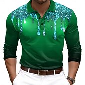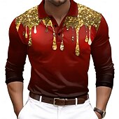 More information about Men's Metal Finish 3D Digital Print Polo Shirts Golf Shirt Long Sleeve Polo Shirts Collared Shirts Casual Party Evening Wear Dailywear Outdoor clothing Buttons 3D Print Spring Fall Winter Red Blue
