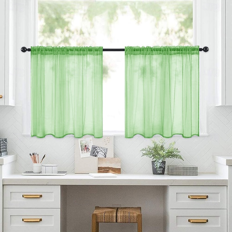 Kitchen Curtain Solid Color Polyester Short Curtains  Living Room, Bedroom, Kitchen Counter Divider, Sheer Privacy Drapes 2