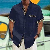 More information about Men's Solid Color Button Up Shirt Printed Shirts Short Sleeve Hawaiian Resort Outdoor Vacation Holiday Summer Turndown Pocket Print Button-Down Black Navy Blue