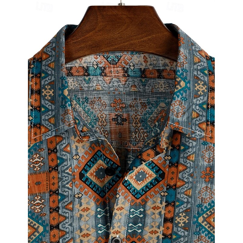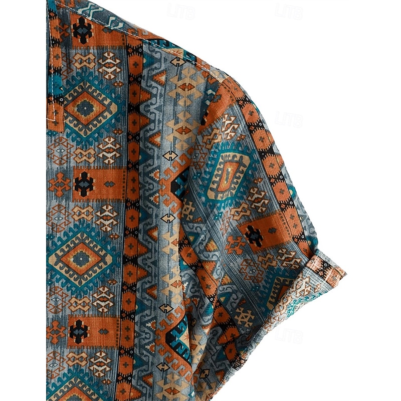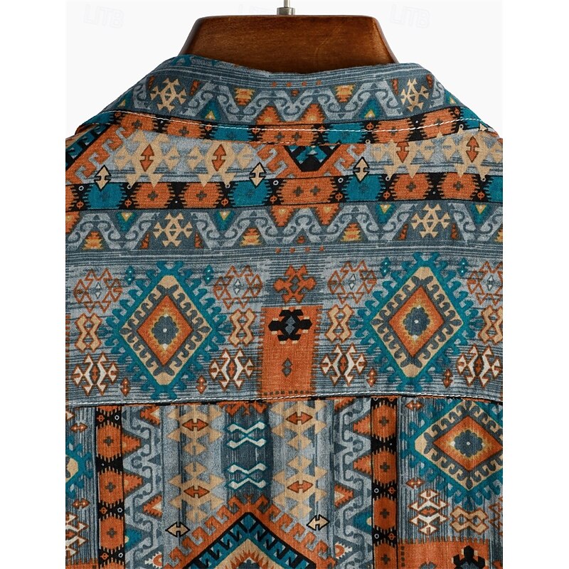 Retro Vintage Boho 1970s Shirt Hawaiian Shirts Hippie Aztec Tribal Fancy Dress Men's Halloween Carnival Music Festival Beach Vacation Wear Retro Theme Party Adults' Shirt 15