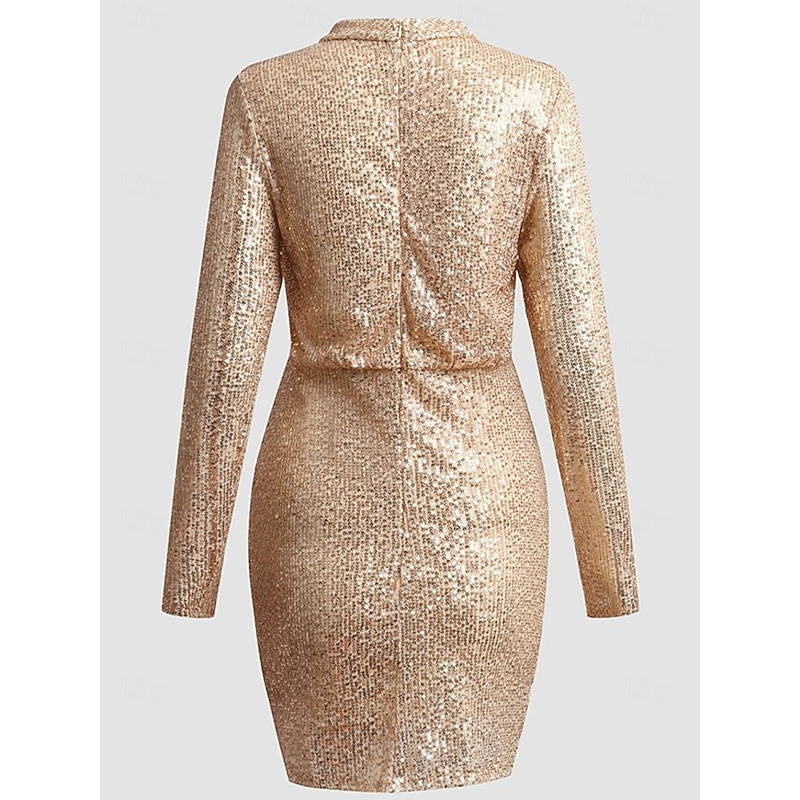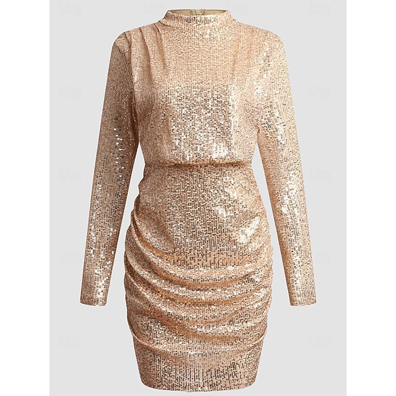 More information about Women's Mini Dress Sequin Dress Cocktail Dress Elegant Dress Fashion Modern Evening Party Cocktail Party Regular Fit Plain Long Sleeve High Neck Champagne Spring Fall
