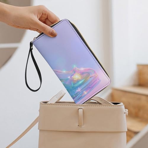 Womens Leather Wallets Star Glass Slippers Wallet for Women Large Capacity Card Phone Holder Ladies Purse with Wriststrap 1