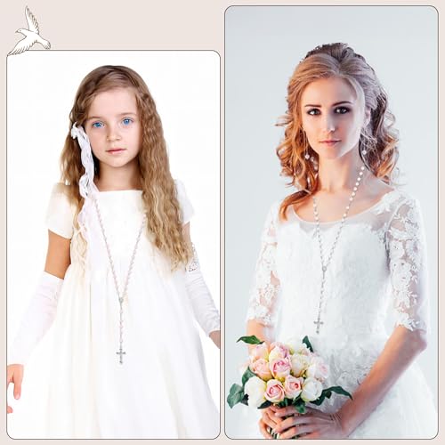 32 Set Pearl Rosary Beads Bulk Glass Rosaries Catholic for Women Jesus Holy Cross Rosary with Organza Bags First Communion Baptism Church Religious Confirmation Present 4